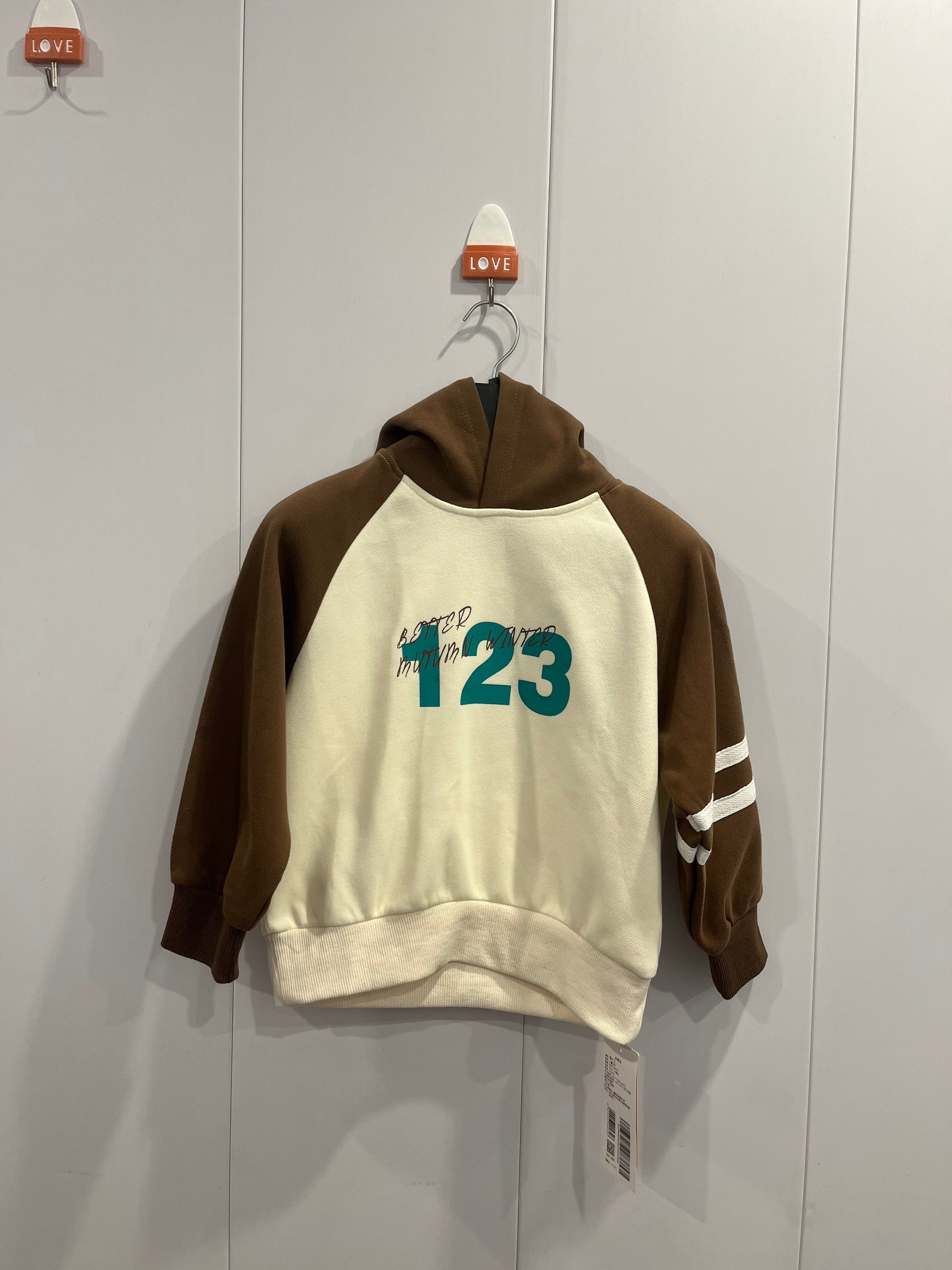 This baby hoodie combines brown and beige tones to create a trendy, cool look for your little one. Made from soft, comfortable fabric, it provides warmth and a relaxed fit suitable for everyday activities. Its stylish design ensures your child stays both cozy and fashion-forward.
