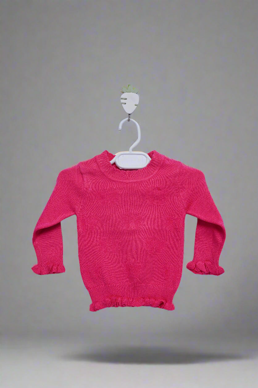 This deep pink knitted baby sweater offers a perfect blend of warmth and softness, designed to keep your little one comfortable in cooler temperatures. Crafted with gentle, breathable yarn, it protects delicate skin while providing cozy insulation. Its timeless style and durable knit make it an essential piece for everyday wear.
