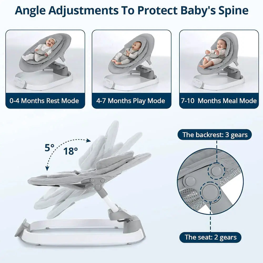 - Provides multiple adjustable positions to cater to your baby's needs, whether they're playing, resting, or sleeping.