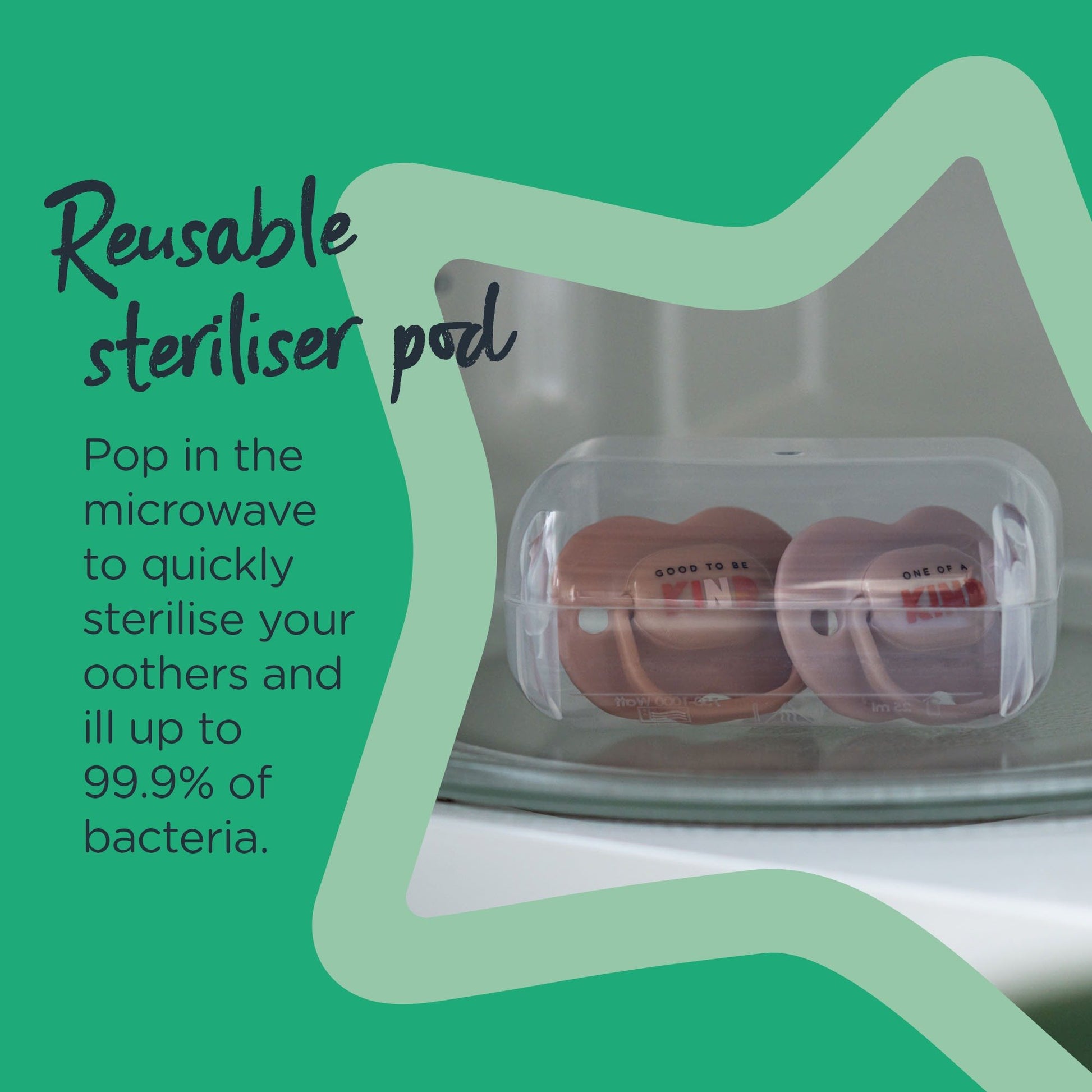 - Supports Natural Oral development – The Symmetrical Orthodontic Shaped teat has been designed to improve balance making it easier for babies to hold the soother in their mouth and supports natural oral development